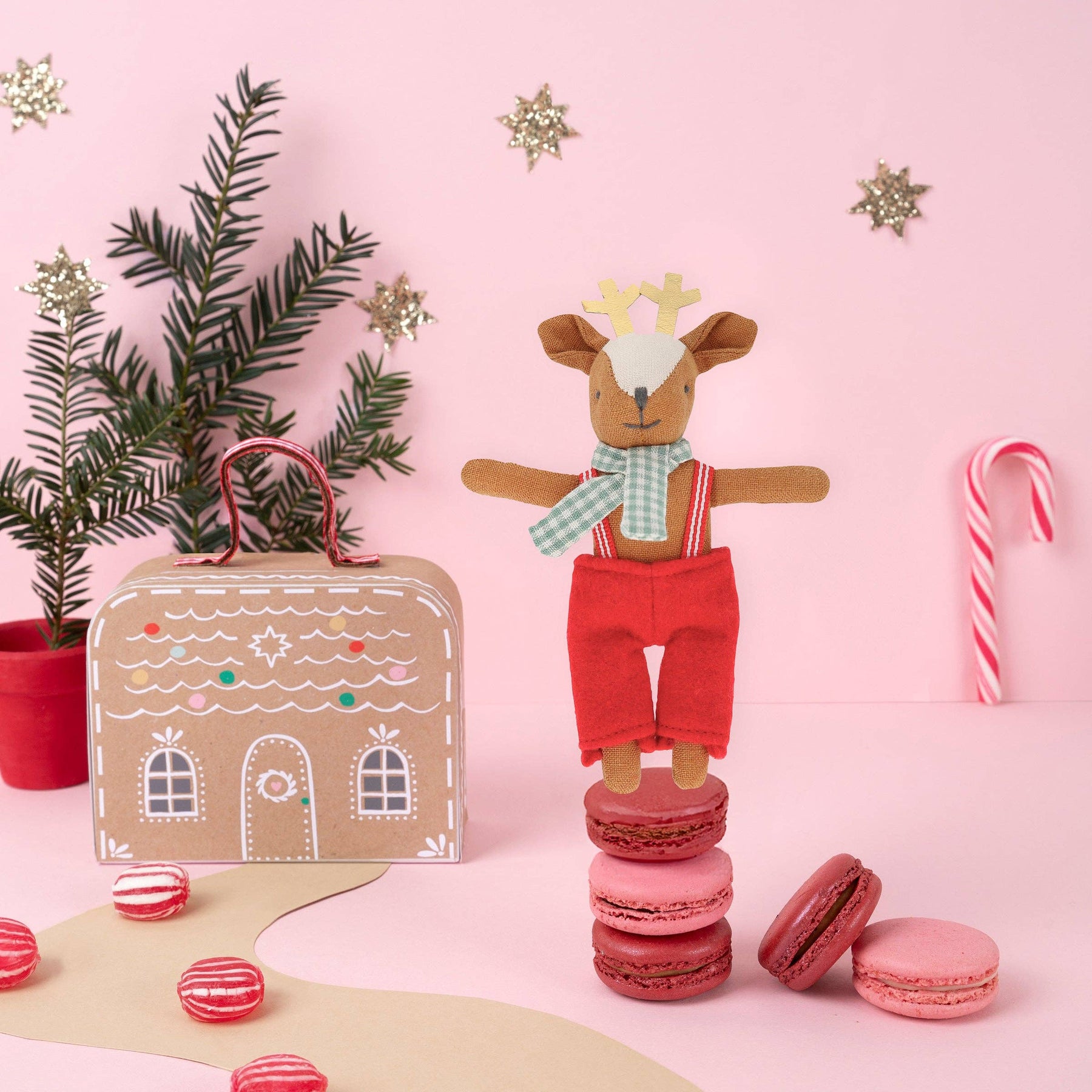 Gerade als Sie dachten, unsere Geschenke könnten nicht noch erstaunlicher werden, hier ist eine entzückende kleine Rentierpuppe mit einem Lebkuchenhaus-Koffer zum Wohnen! Viele schöne Verzierungen und besondere Details machen dies zu einem Geschenk, das man schätzen wird. Ein fabelhaftes Spielzeug, um es auf festlichen Reisen, Übernachtungen und für fantasievolles Spielen während der Feiertage mitzunehmen.