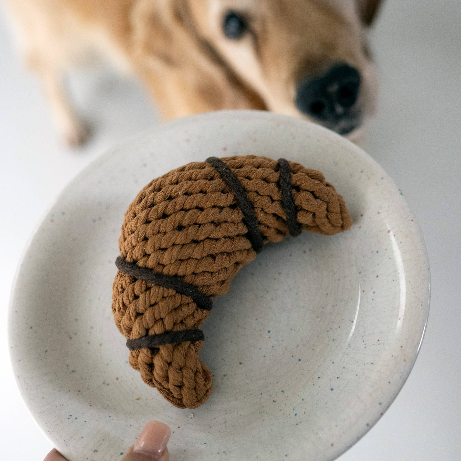 Bonjour, Mesdames et Messieurs! Mit Chrissy Croissant zieht französischer Chic ins Hundezimmer ein – goldbraun, herrlich bissfest und ganz ohne Kalorien, dafür aber mit jeder Menge Spielspaß! Ob zum Werfen, Apportieren oder zum genüsslichen Kauen – Chrissy Croissant ist vielseitig einsetzbar und einfach magnifique! KAUEN ERLAUBT – FÜR SPIELERISCHE ZAHNREINIGUNG Wie alle LABONI TOYS wird auch Chrissy Croissant in liebevoller Handarbeit aus reiner Baumwolle gefertigt und mit Naturfarben gefärbt. Beim Kauen wirken die natürlichen Baumwollfasern wie Zahnseide und reinigen sanft die Zähne – so macht Zahnpflege richtig Spaß! Das TÜV SÜD-Siegel bestätigt, dass jedes Detail den hohen Anforderungen der europäischen Kinderspielzeugrichtlinie entspricht. Unsere LABONI TOYS sind sogar als Beißspielzeug für Kleinkinder zugelassen – für höchste Sicherheit, Qualität und unbeschwerten Spielspaß! Oh là là – ein Geschenk mit Stil! Ob als Mitbringsel, Geschenk oder einfach als kleine Verwöhnung zwischendurch