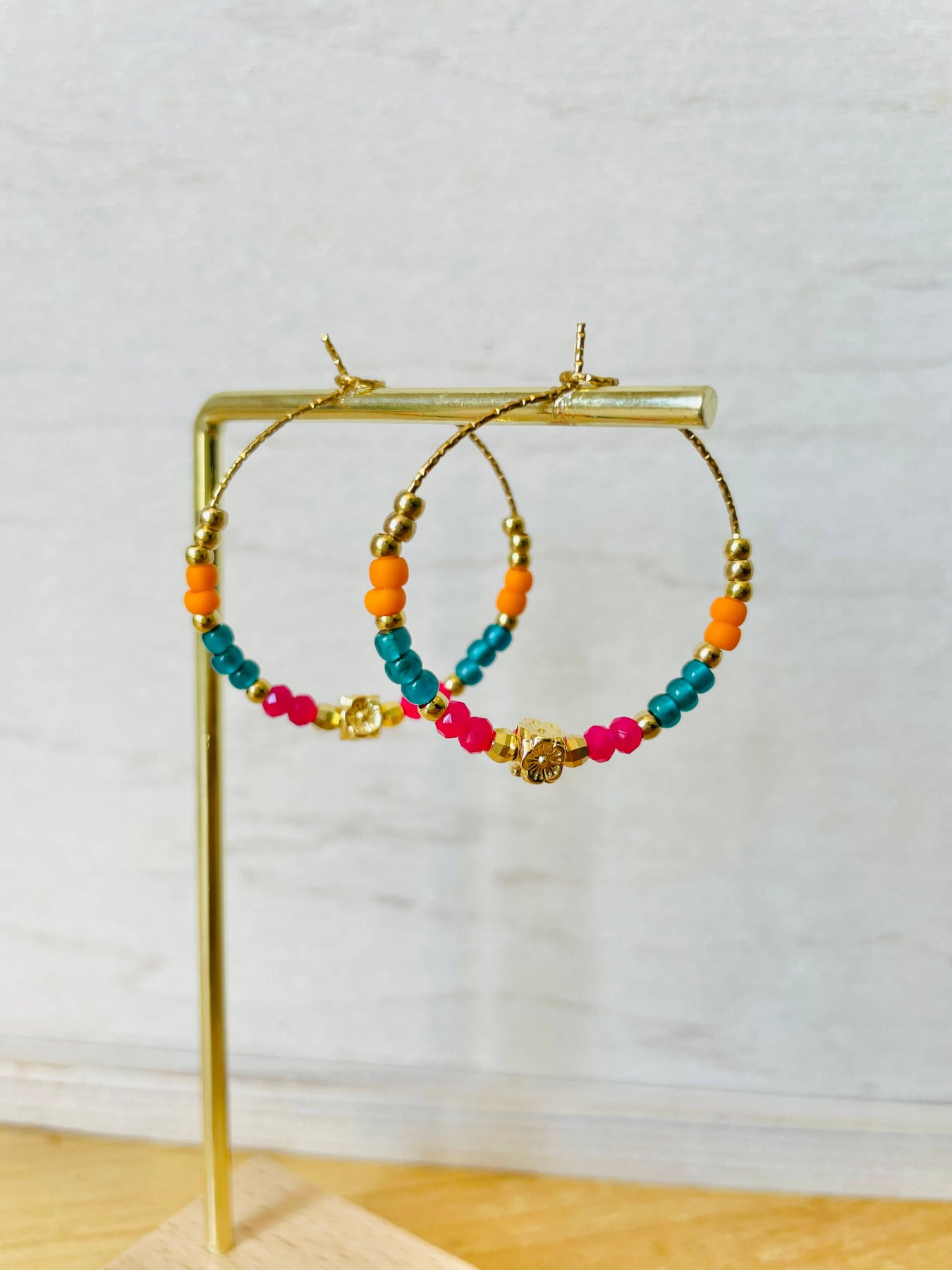 Creolen aus Edelstahl, verziert mit Rocaillenperlen und Edelstahlperlen Dank der Qualität der verwendeten Materialien werden Ihre Ohrringe lange halten.